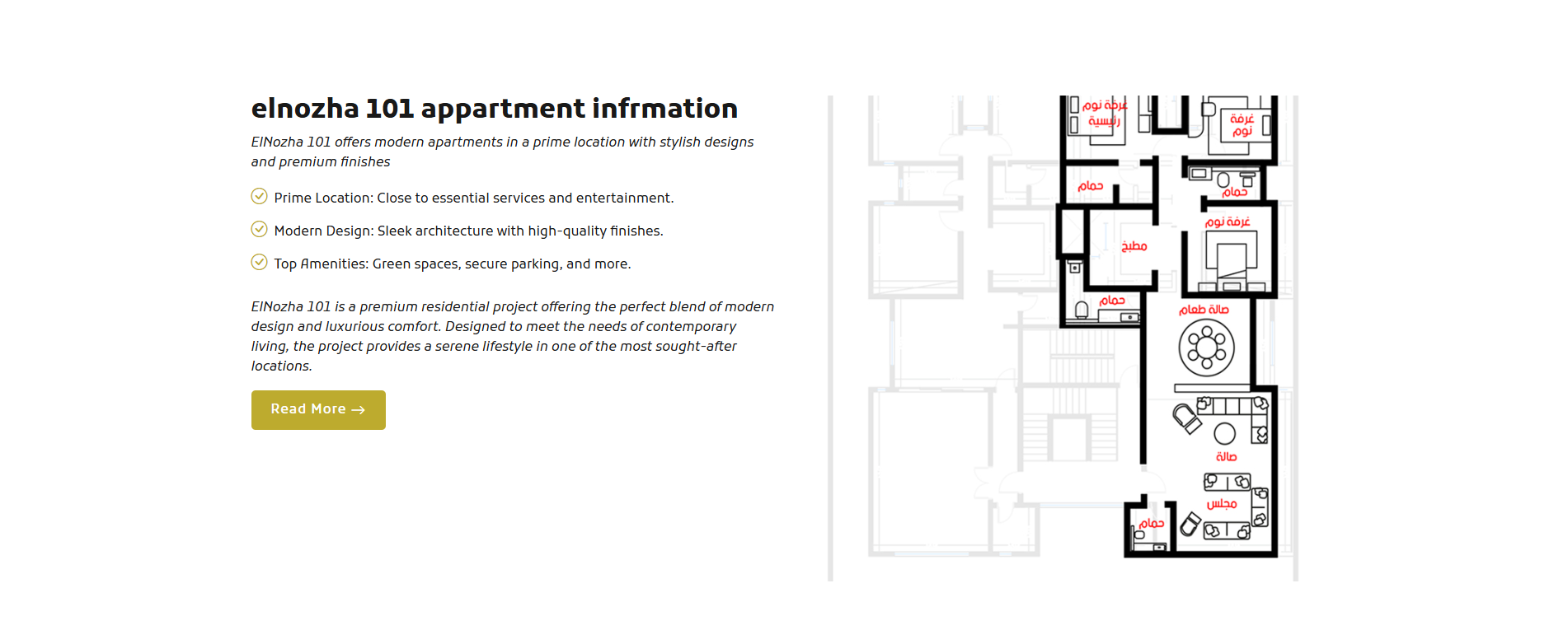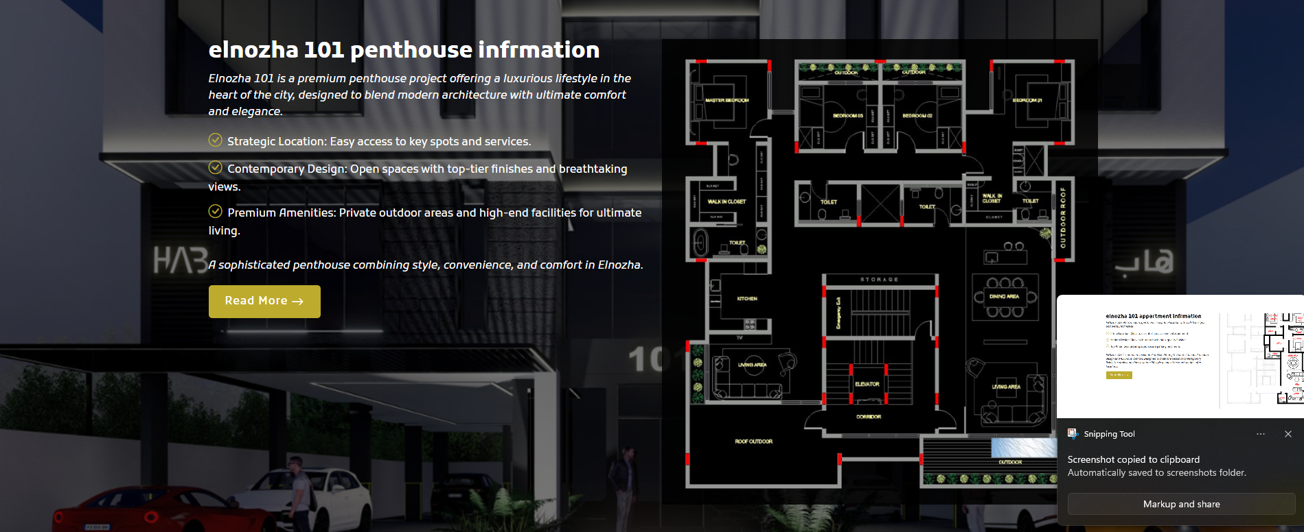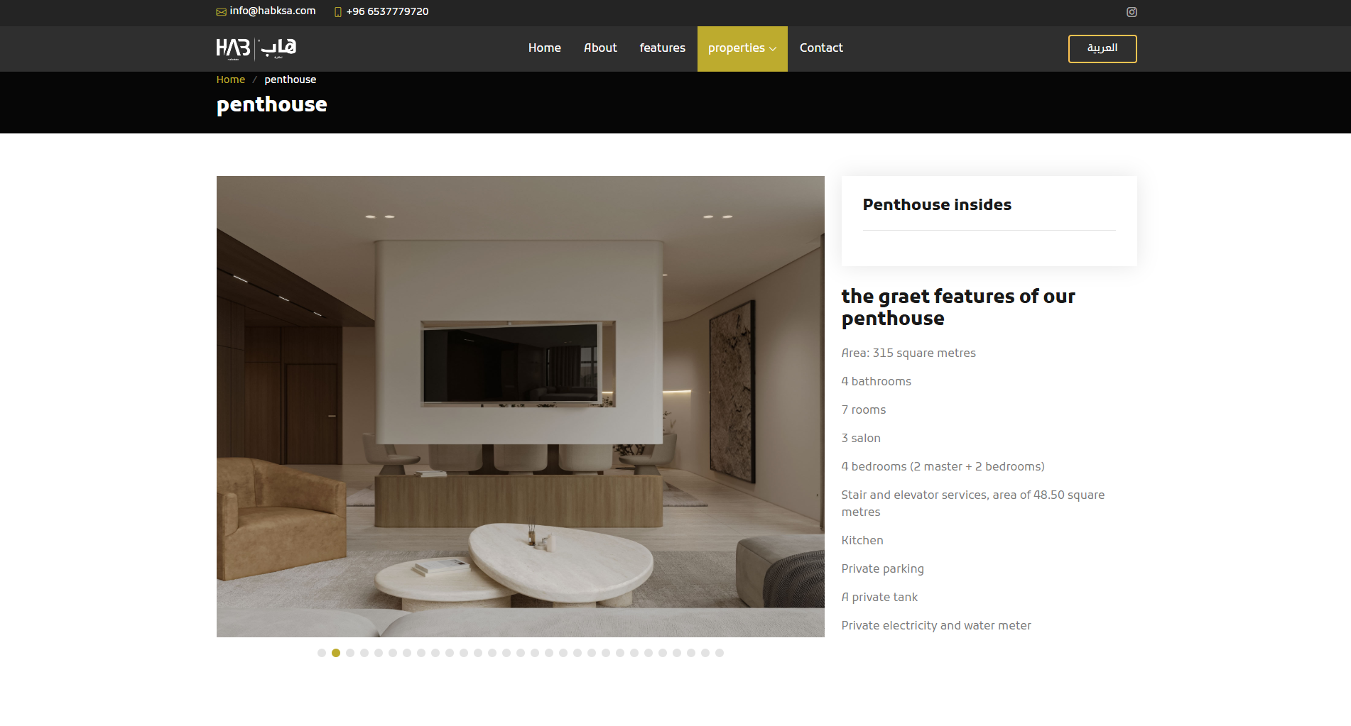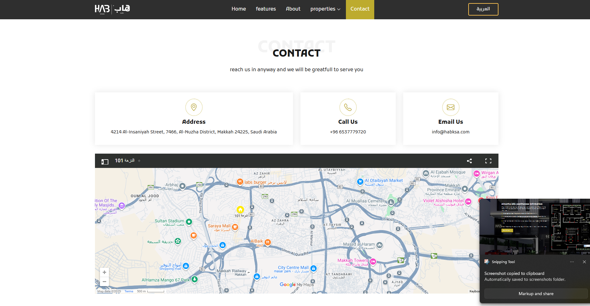 A clean, modern website for a construction company showcasing flagship projects, core services, and company credentials. The page includes a visual slider, project highlights, and clear calls to contact the team. A language toggle enables browsing in English and Arabic.